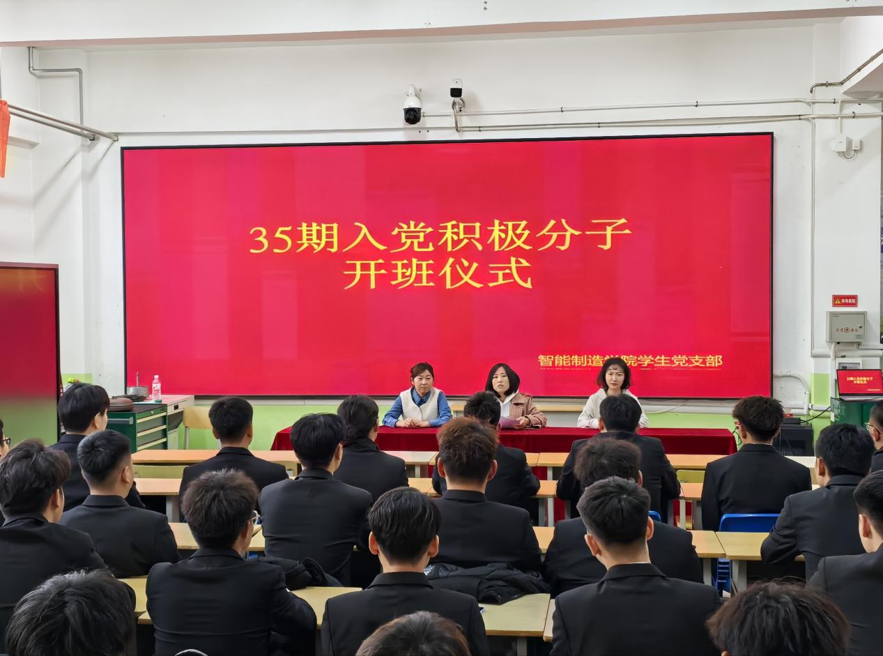 为深入学习贯彻党的二十届三中全会精神,切实发挥党组织教育青年的作用,加强对入党积极分子的培养教育,11月6日中午,智能制造学院学生党支部在四号实训楼二楼举行了第三十五期入党积极分子培训班开班仪式。智能制造学院党总支副书记于鹏、学办主任罗伟、辅导员邹慧、刘婉瑶及全体培训班学员参加仪式。仪式由罗伟主持。