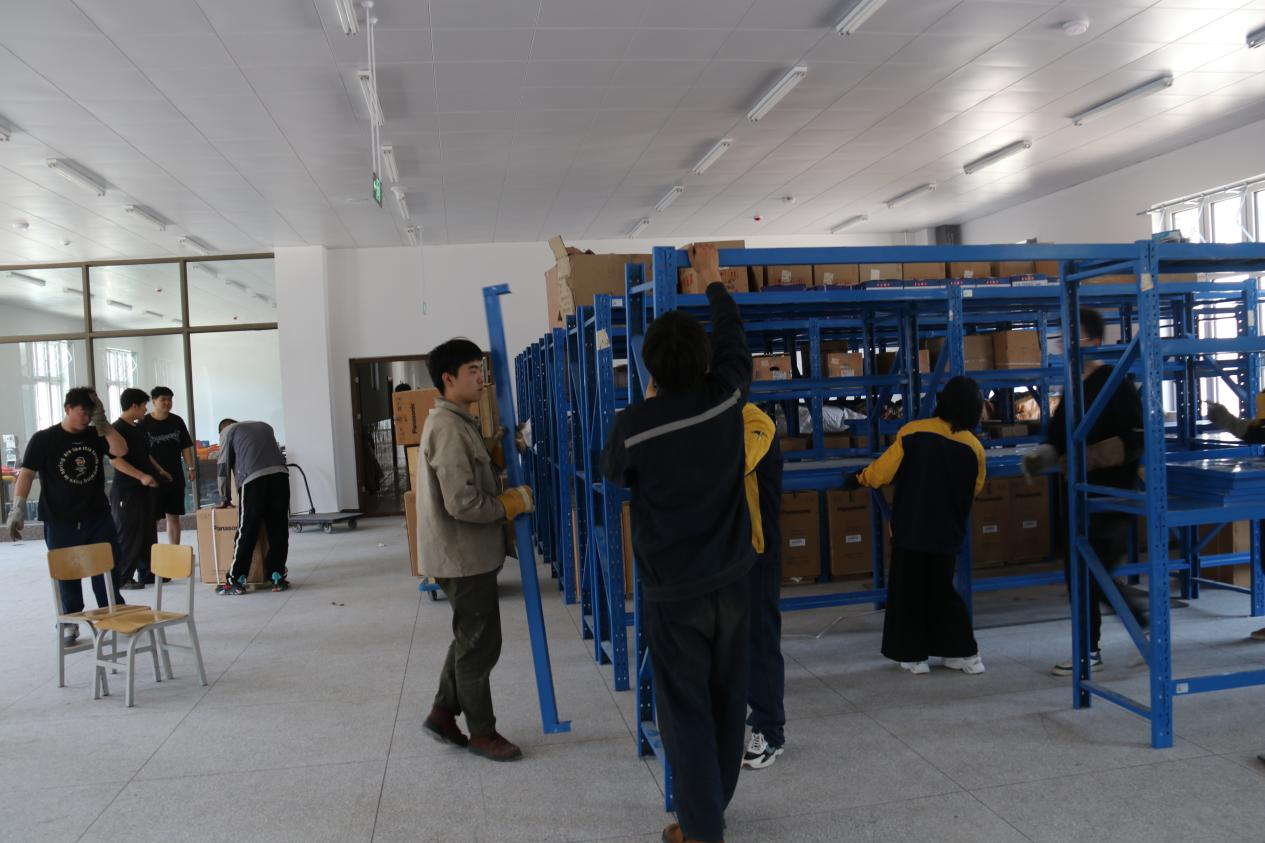 在搬迁过程中,党员们积极发挥带头作用,冲锋在前,不怕脏、不怕累。他们有的负责拆卸设备、有的负责搬运设备、有的负责装卸车辆、有的负责驾驶车辆、有的负责协调沟通,师生间分工明确,配合默契,整个搬迁过程有条不紊,工作成果安全高效。经过一天的共同努力,三号实训楼300余台设备和5吨左右的耗材顺利搬迁至大国工匠实训基地。