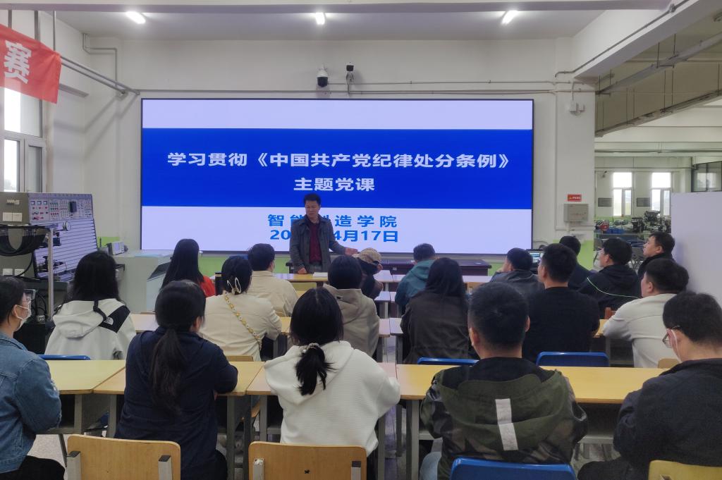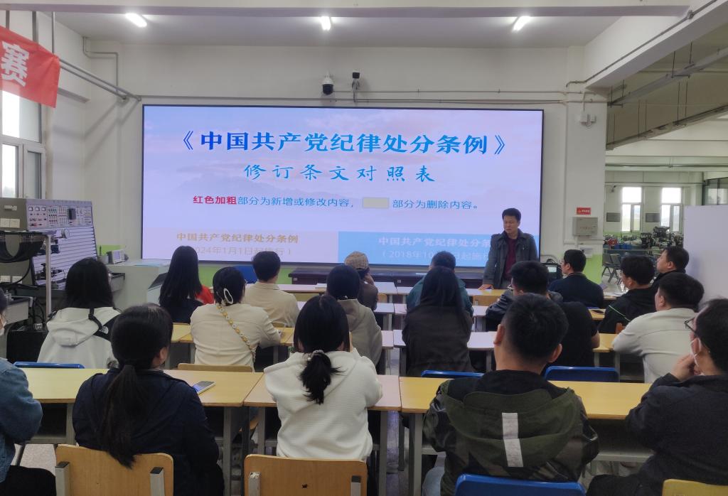 为进一步增强全体党员学习贯彻《中国共产党纪律处分条例》(以下简称《条例》)的理解和认识,增强全体党员的政治自觉、思想自觉和行动自觉,4月17日下午,智能制造学院党总支书记董大伟为全院党员解读新修订的《条例》,分院全体党员参会。