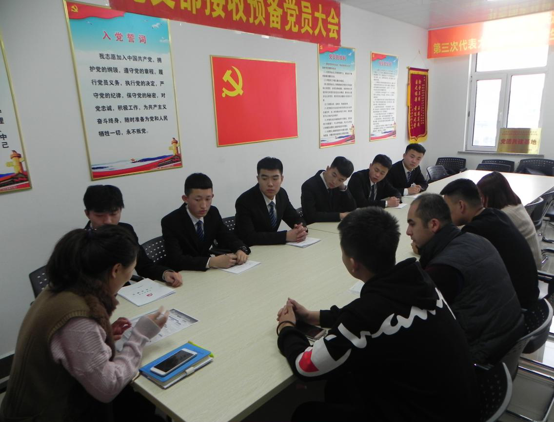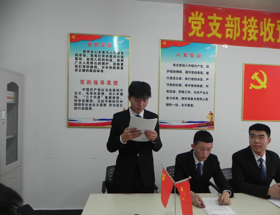 其次,党支部书记王婧婧介绍了中国共产党发展党员的工作流程:第一步要递交入党申请书,再由党组织派人对其谈话;第二步就是入党积极分子的确定和培养教育,这是入党必不可少的流程;第三步是对发展对象的确定和考察,是否符合入党资格;第四部是预备党员的接收,由上级党委派人再次谈话,经过上级党委的审批之后,才可以在党委组织部门备案;第五部是预备党员的教育考察和转正。可想而知,成为一名合格的中国共产党员是不容易的,但是我们只要努力去做,就能成为一名合格的共产党员。在入党宣誓那一刻我们会感到无比的自豪。