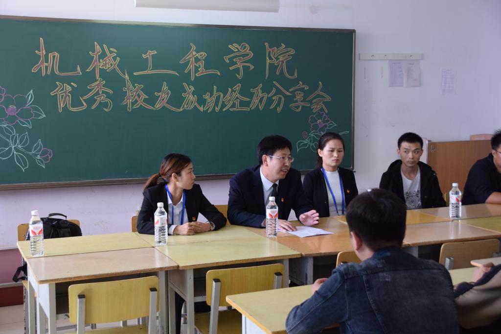 在座谈会上,我院党总支书记刘锡权书记、分团委书记罗伟书记、学生工作办公室主任王婧婧主任深情接待,并与老校友们进行了一个多小时的亲切座谈。在分享会上,刘书记代表学院对校友们回到母校表示热烈的欢迎,并且对于在校庆七十周年之际能够在百忙之中回来看望母校表示感谢。随后三位校友与老师和同学们分享了他们在工作岗位上以及在工作上的一些经历。学生干部纷纷向他们提出学习和生活终于到的困惑,几位校友分享了他们在校生活的经验和当学生干部的体会。几位校友对同学们共同的告诫是:请同学们做事情不怕苦,不怕累,工作要一步一步来,切不可因为工作的枯燥而选择放弃。