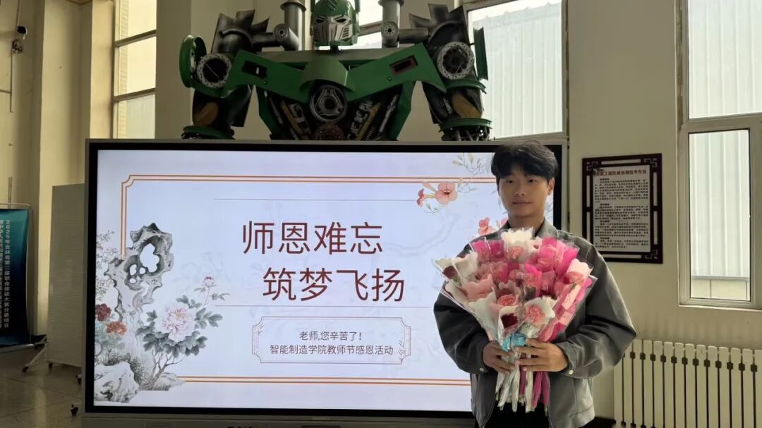 在9月教师节来临之际,智能制造学院开展“传道授业 育梦成林”教师节主题活动,学生代表以鲜花为载体,向学院全体教师送上节日祝福与诚挚敬意,进一步弘扬尊师重教传统,营造和谐融洽的校园氛围。