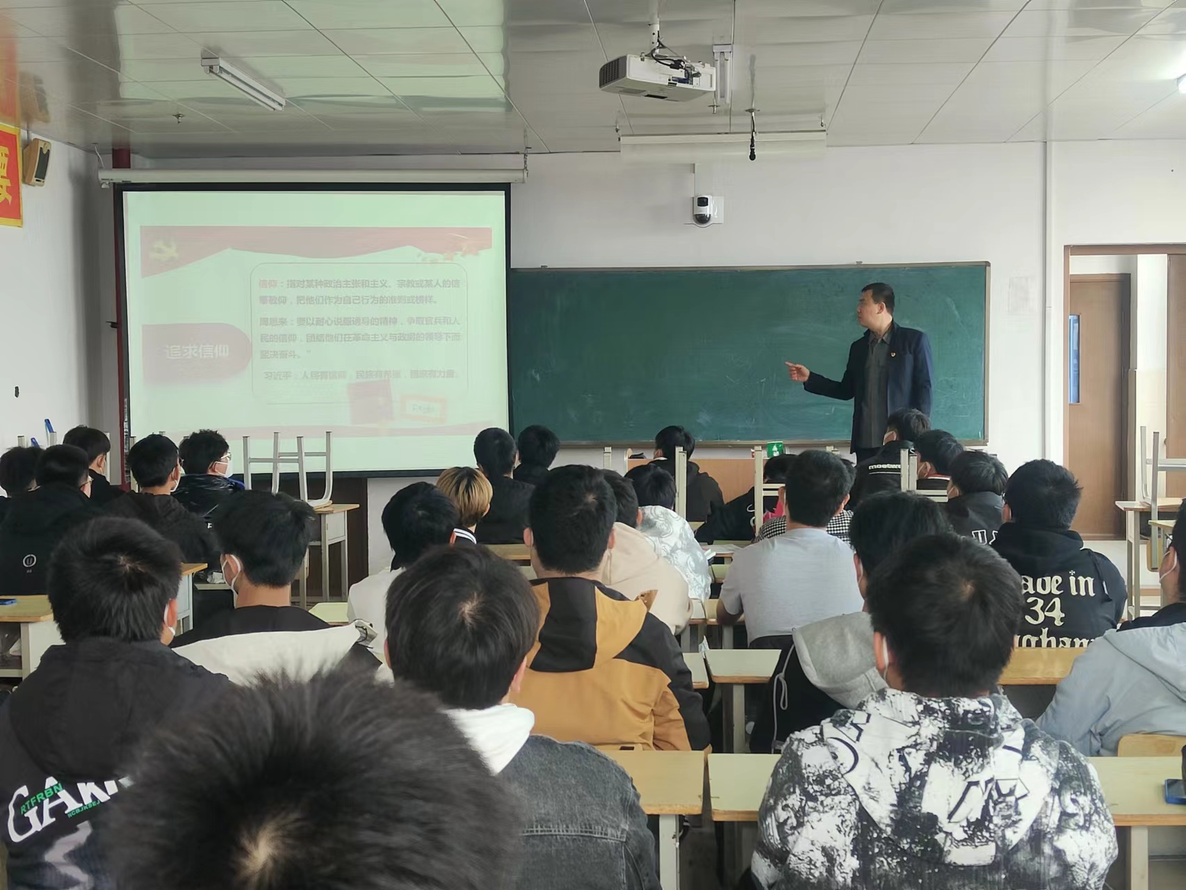 机械工程学院学生党支部于11月11日对2022级新生进行了入党启蒙教育。党总支副书记、学生党支部书记于鹏、学院分团委书记罗伟、辅导员邹慧、李庆博、王诗禹分班级为大一新生从党的知识、端正入党动机和入党要求与流程三个方面进行详细讲述。