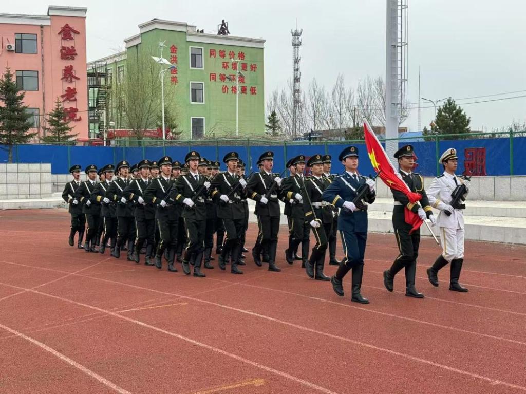 升旗仪式的第一项,升国旗、奏国歌。仪式开始,英姿飒爽的国旗护卫队迈着整齐有力的步伐护送国旗走向升旗台。在庄严义勇军进行曲中,五星红旗缓缓升起,全体师生庄严肃立,向国旗行注目礼,高唱国歌,现场气氛庄重而肃穆。