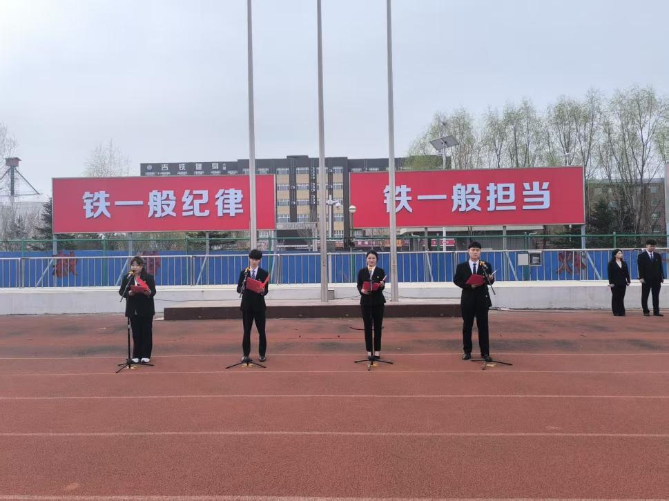 升旗仪式第二项,学生代表潘子沐、邵添珹、于越、王靖淇进行国旗下讲话:书籍是文明传承的火种,是成长路上最忠实的伙伴,每一本书都是前人智慧的结晶。读一本好书,可以使人心灵充实,窥见更广阔的世界。学生代表呼吁同学们珍惜大学时光,多读书、读好书,通过阅读获取文化知识、提升能力素养,将书籍中的智慧转化为推动社会的进步力量。