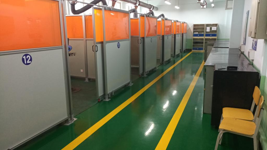 在校领导的大力支持下,机械工程学院焊接实训室完成了升级改造工作。改造后的实训室设施齐全,排风及除尘效果良好且有效的降低了噪声。焊接实训室共有焊接设备12台,同时配备工位监控系统可对电焊工的操作进行视频监控。