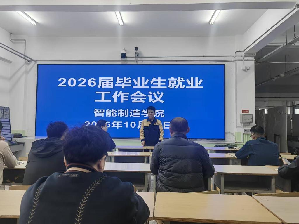 2025年10月22日,智能制造学院召开2026届毕业生就业工作会议,学院全体教师参会。会上,董书记分析了当前就业形势,强调了就业工作对毕业生发展和学院人才培养质量的重要性。