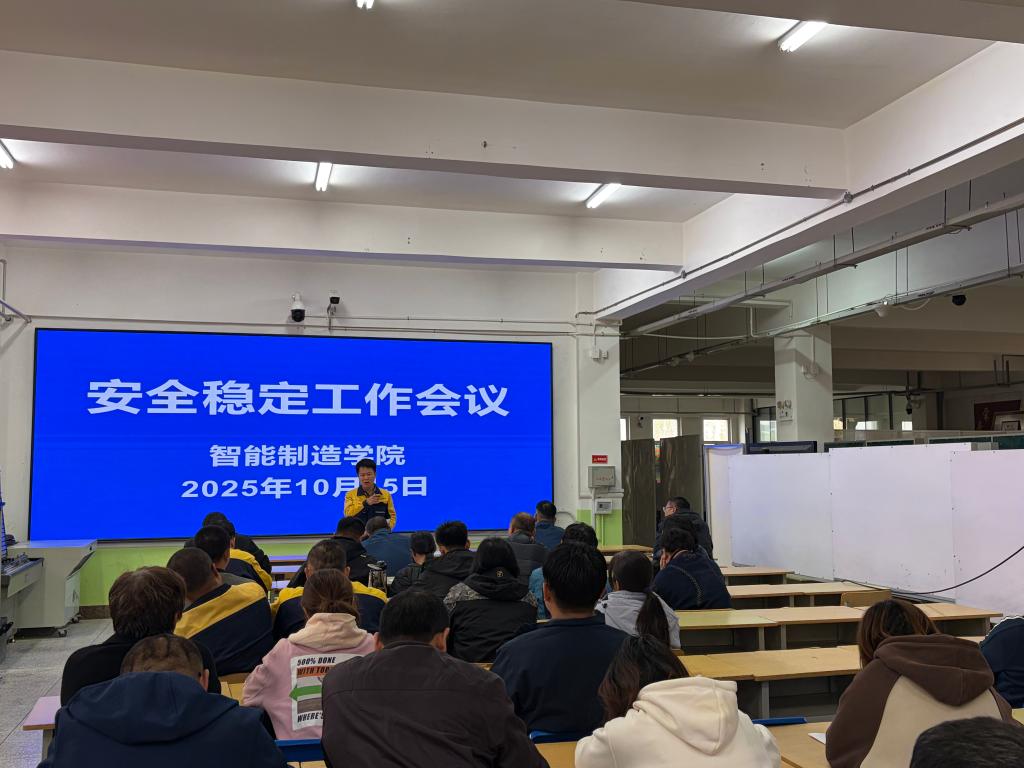 2025年10月15日,智能制造学院党总支召开了安全稳定工作会议,会议在四号实训基地二楼召开,会议由党总支书记董大伟主持,全体教师参会。