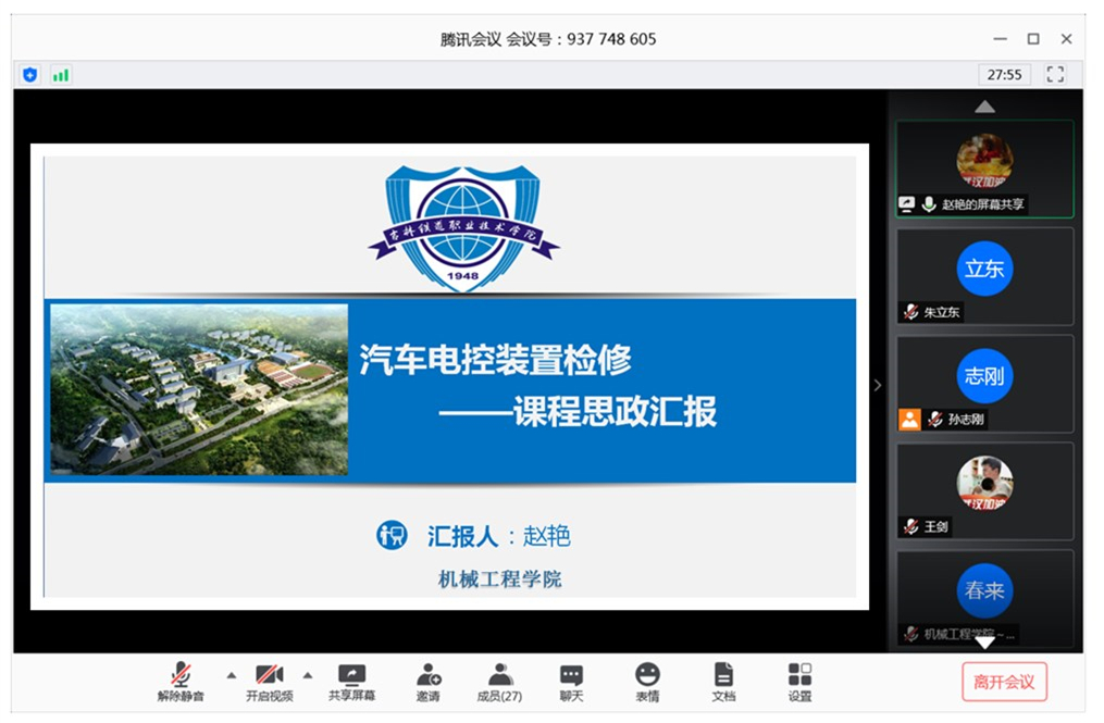 会上,王瑞玲、赵艳、谢俊清、王剑等四位教师,对前期所承担“课程思政”建设分别从如何进行课程定位和课程设计,如何针对不同课程如何选取思政元素,如何因事因时的将思政元素与专业知识有机融合等方面,借助典型案例为大家分享了课程思政建设经验。