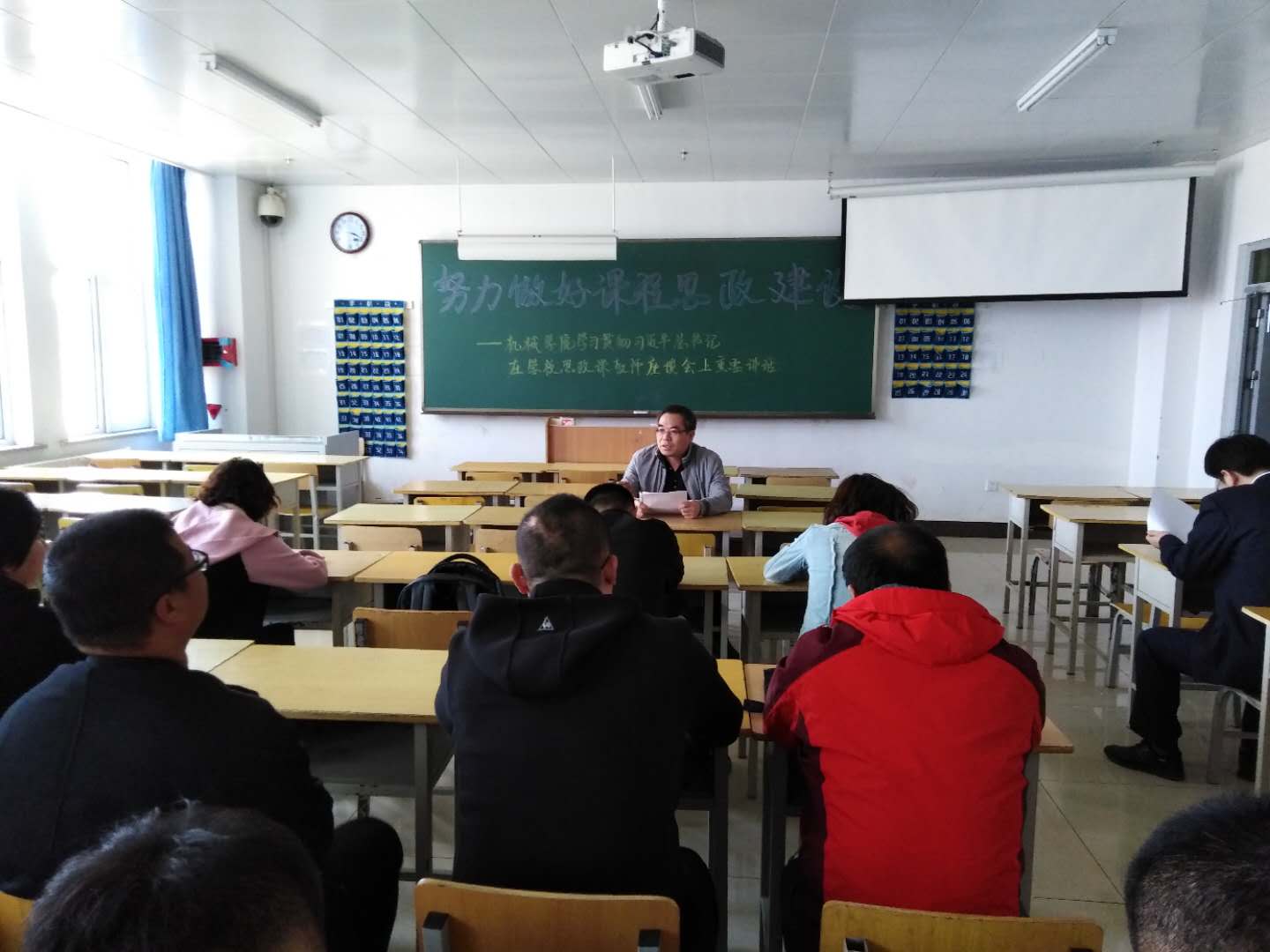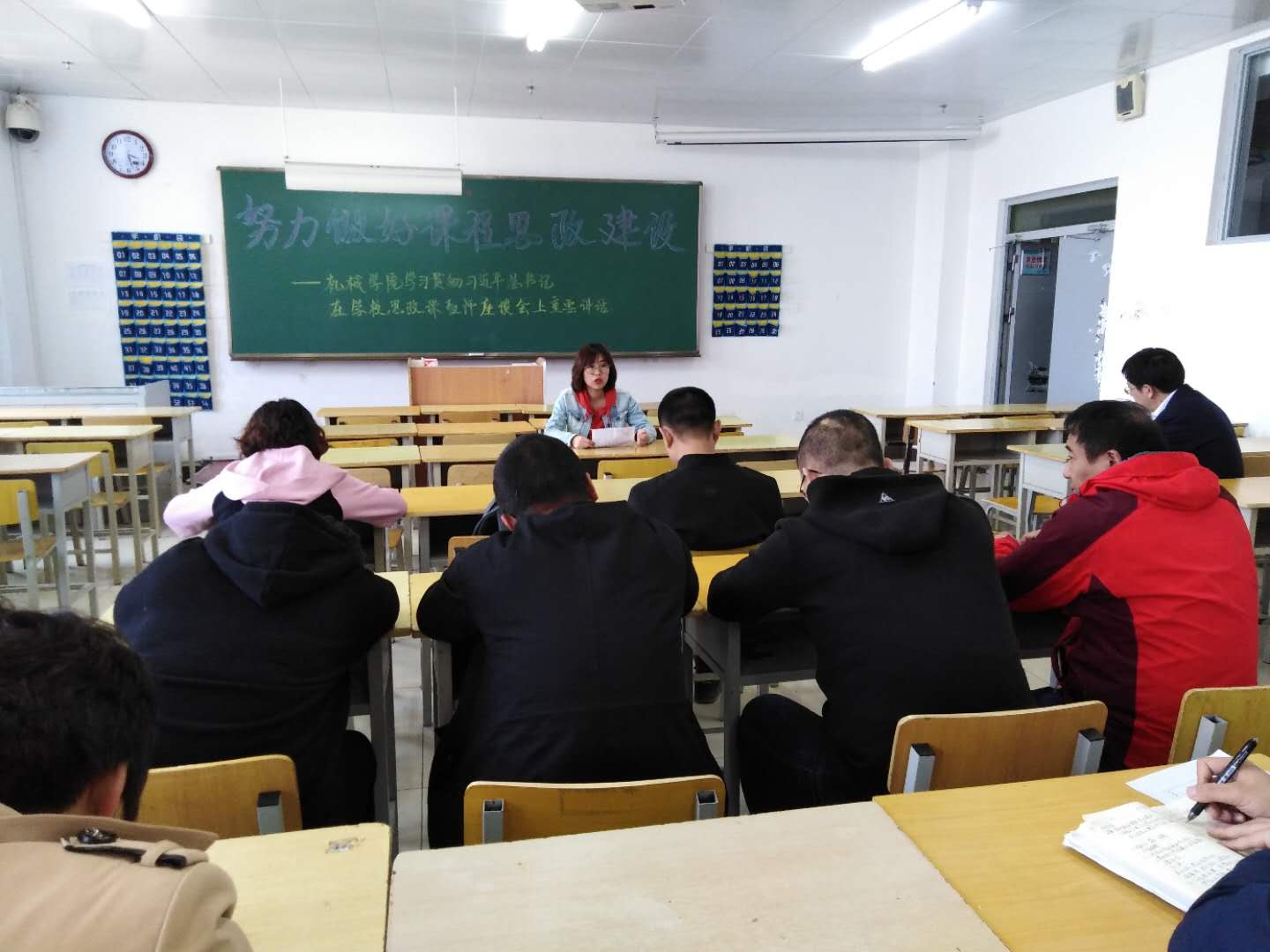 全体教师首先观看了“习近平总书记主持召开学校思想政治理论课教师座谈会”的视频新闻,认真聆听了总书记的讲话,明确了办中国特色社会主义教育,就是要理直气壮开好思政课,用新时代中国特色社会主义思想铸魂育人。