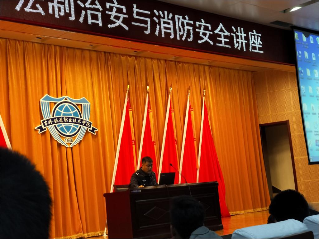 2017年11月15日,在学院图书馆报告厅,机械工程学院全体学生参加了法制治安消防安全教育讲座。吉林市公安局支队佟伟光为学生讲授校园贷、传销等法制治安知识。