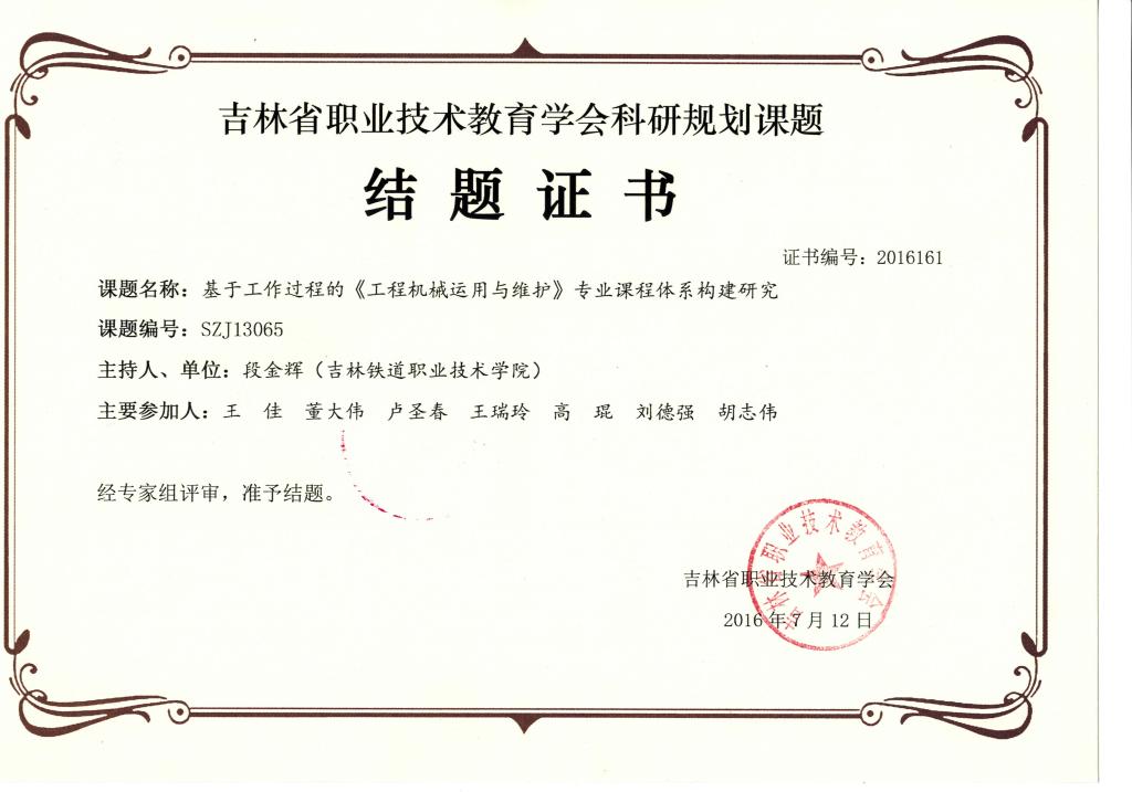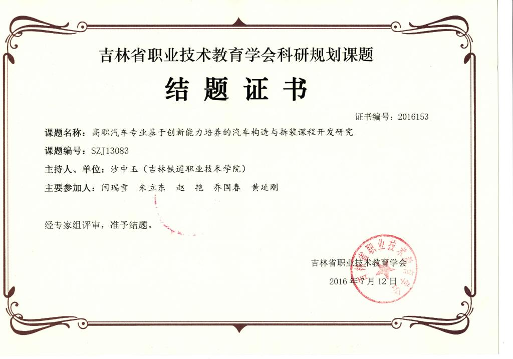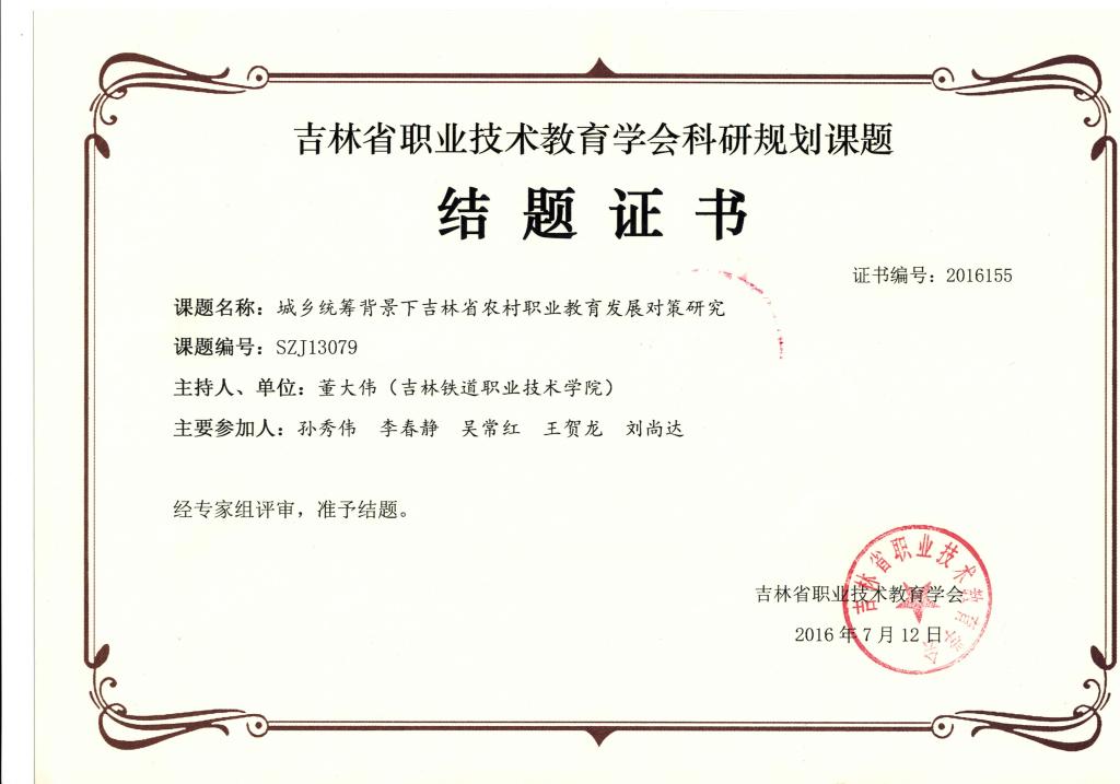 2016年7月结项吉林省职业技术教育学会科研规划课题4项