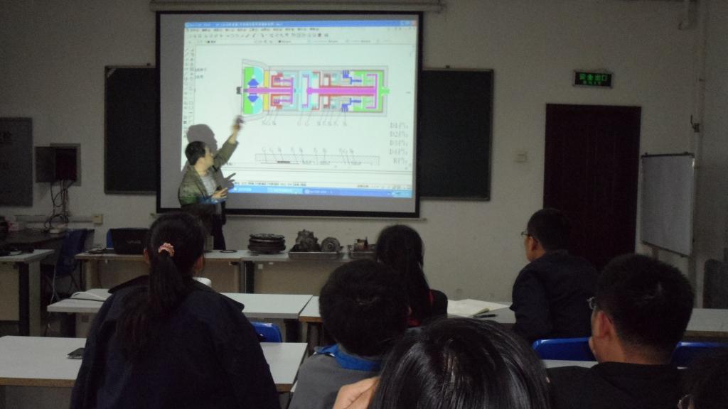卢圣春副教授利用自己制作的课件对柴油机的结构、原理进行了详细的讲解,课程中还讲解了电控柴油机的机构及控制原理等内容。