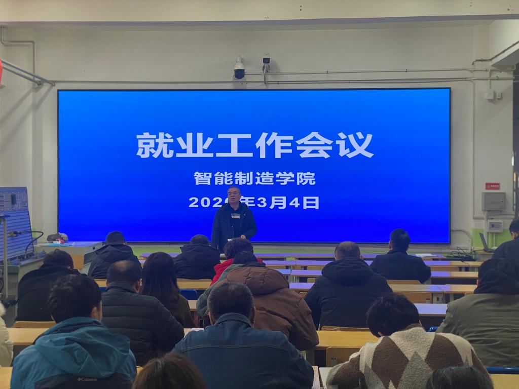 为深入推进2026届毕业生就业工作,精准对接市场需求,全力保障毕业生高质量充分就业,2026年3月4日,智能制造学院召开就业工作会议。学院全体教职工参会,会议围绕当前就业工作重点、难点及推进举措展开全面部署。